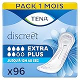 1TENATENA Discreet Extra Plus - Serviettes Incontinence Femme - Post-accouchement - Protections Absorbantes pour Fuites Urinaires Modérées à Fortes - 96 Serviettes (Pack 1 Mois)